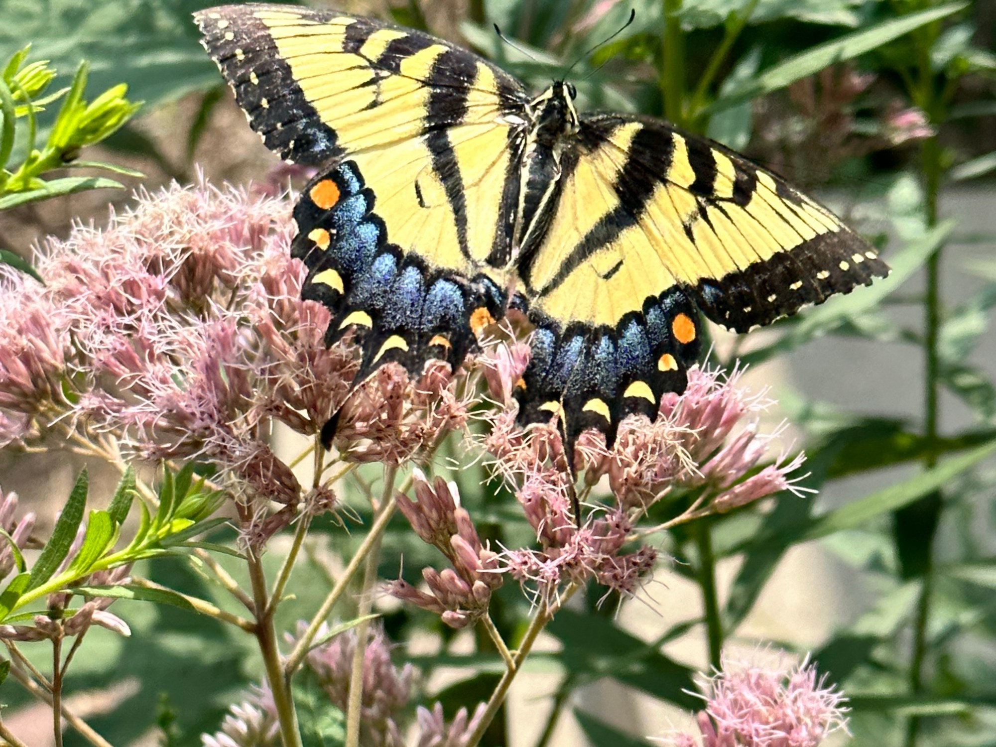 - Sweet Joe Pye, eutrochium purpureum. Pretty pink plumes adorn this plant, and it is perfect for areas that get partial sun.